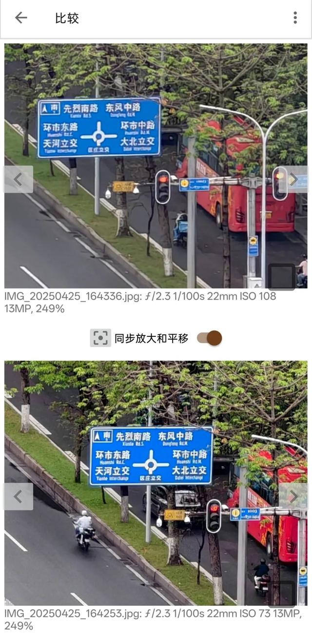 无论是树叶还是路牌上字,都能拍得更清晰。